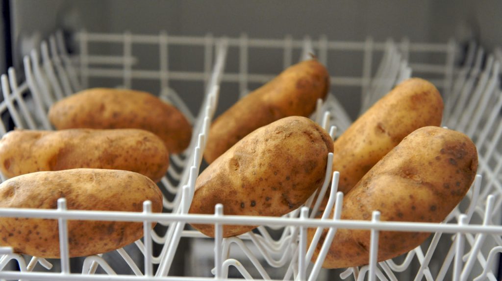 De vaatwasser is hermetisch afgesloten en houdt het interieur beschermd tegen licht en vocht, twee factoren die het kiemen van aardappelen versnellen. Bovendien zorgt het feit dat dit apparaat zelden in gebruik is voor een stabiele omgeving voor de knollen.