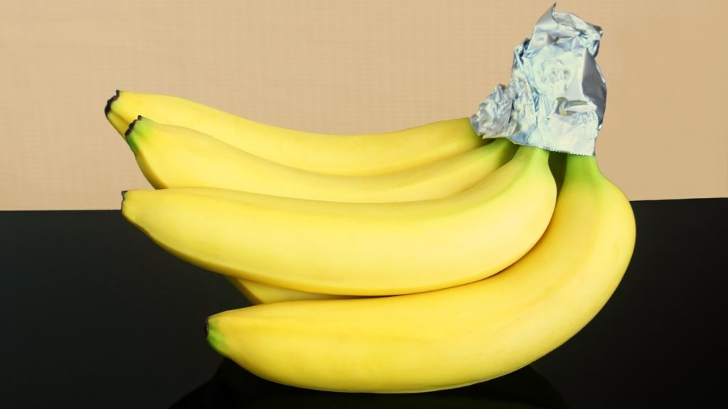 Een van de meest effectieve trucs om je bananen langer vers te houden, is de steeltjes van het fruit in aluminiumfolie wikkelen. Deze eenvoudige en toegankelijke strategie helpt de afgifte van ethyleengas te verminderen, dat verantwoordelijk is voor het versnellen van het rijpingsproces van bananen. Door dit te doen, blijven je bananen stevig, geel en smaken ze wekenlang heerlijk.