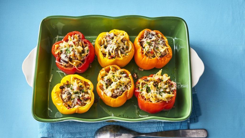 Gevulde paprika’s zijn een snel, veelzijdig en verwarmend gerecht dat zowel in een vegetarische als vleesvariant kan worden bereid. Je kunt ze in ongeveer 40 minuten bereiden (inclusief 10 minuten bakken) en genieten van de volle smaken van de herfst en een vullende, aromatische lunch. Het is gemakkelijk te bereiden en het eindresultaat ziet eruit alsof het uit een goed restaurant komt – kleurrijk, smakelijk en vol aroma’s die je familie en gasten zullen bekoren.