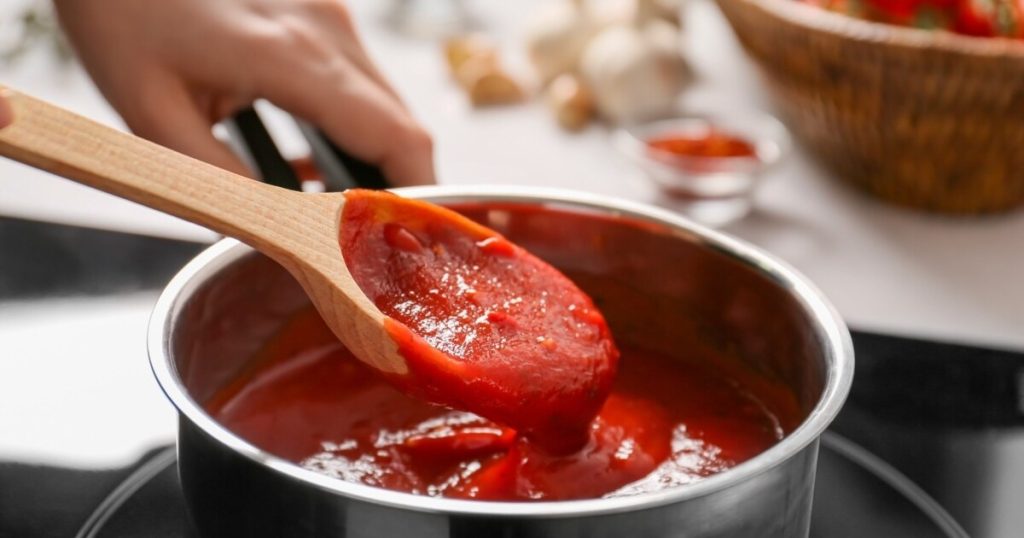 Tomaten saus serveren en bewaren