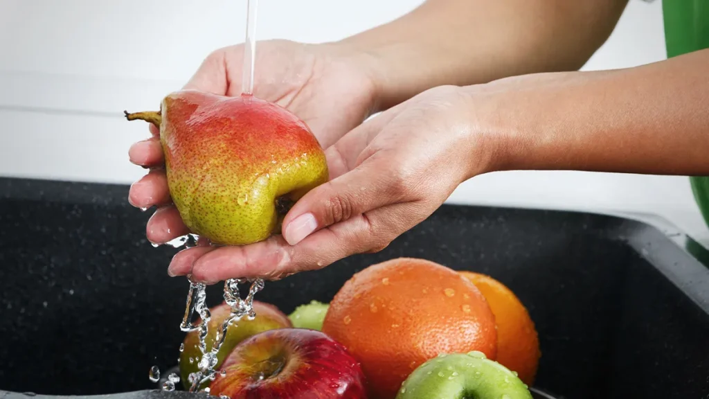 Om gezondheidsproblemen te voorkomen, is het daarom raadzaam om fruit en groenten altijd goed af te spoelen. En misschien is het ook verstandig om ze in kleine hoeveelheden per dag te consumeren.