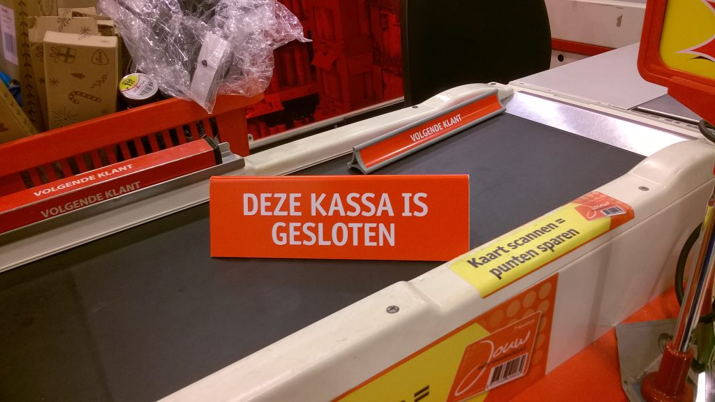 Wanneer de kassamedewerker een bordje met de tekst ‘Kassa gesloten’ neerzet, is er vaak een klant die de boodschap niet helemaal begrijpt.