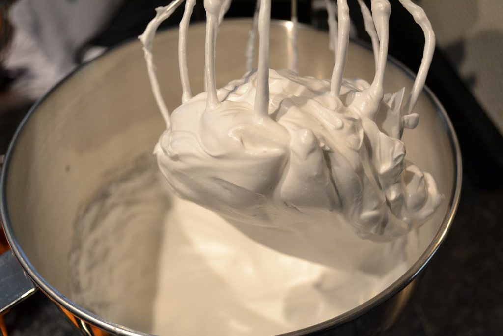 - Blijf kloppen tot de room duidelijk dikker wordt en zachte pieken vormt (de uiteinden van de mixer laten duidelijke patronen achter op het oppervlak, maar blijven nog niet stijf staan).